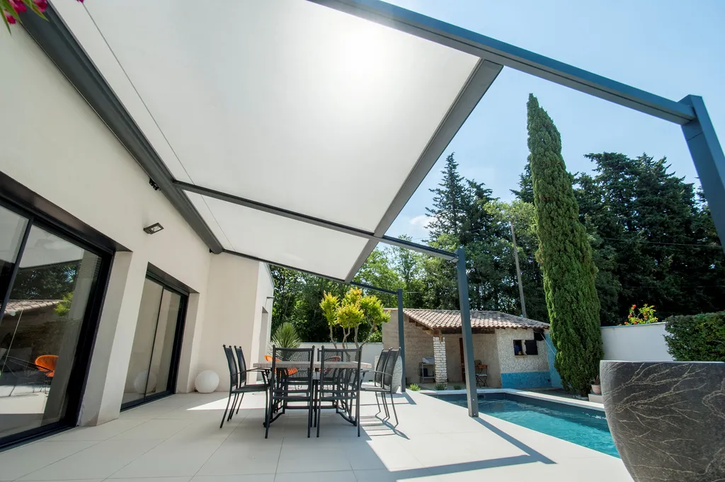 Faire le choix d'une pergola Renson, c’est une structure architecturale à la fois design et intelligente. Grâce à ses lames orientables motorisées, sa résistance au vent et sa parfaite intégration à l’habitat, elle offre un confort optimal en toute saison. Nos modèles sont disponibles en version adossée ou autoportée, avec des configurations variées comme les panneaux coulissants, les parois vitrées ou les stores verticaux.
