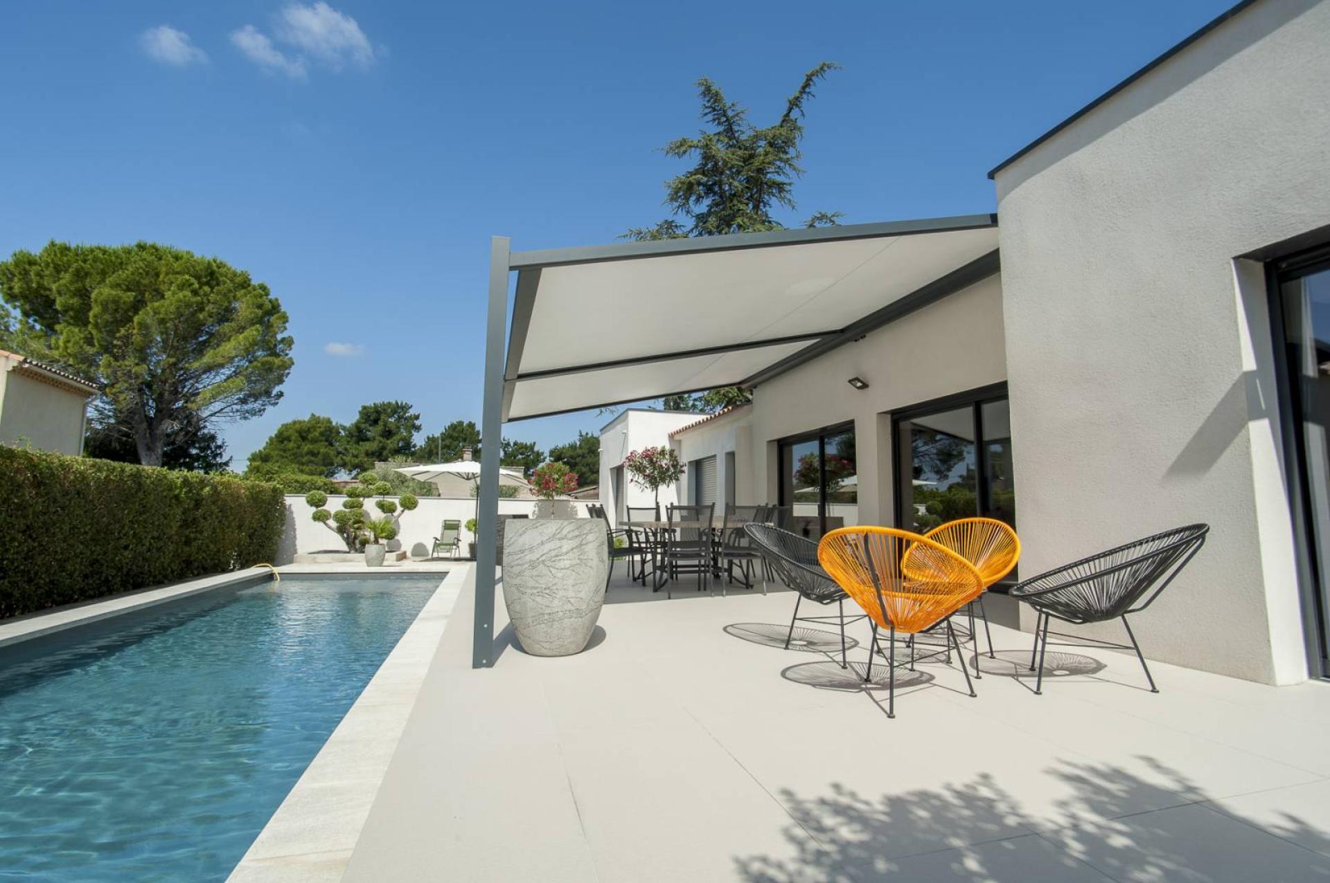 Les équipes de notre entreprise de menuiserie à Salon de Provence sont intervenues pour l’installation d’une pergola avec toile retractable electrique à Pélissanne (13).