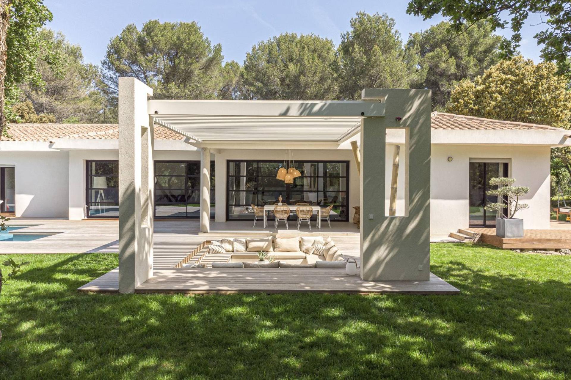 Après avoir récemment déménagé dans le sud, cette famille à décidé de faire construire une sublime villa sur la commune de St-Cannat et nous a contacté pour y intégrer une pergola bioclimatique à lames orientables qui s'intègre parfaitement à la structure imaginée par leur architecte .