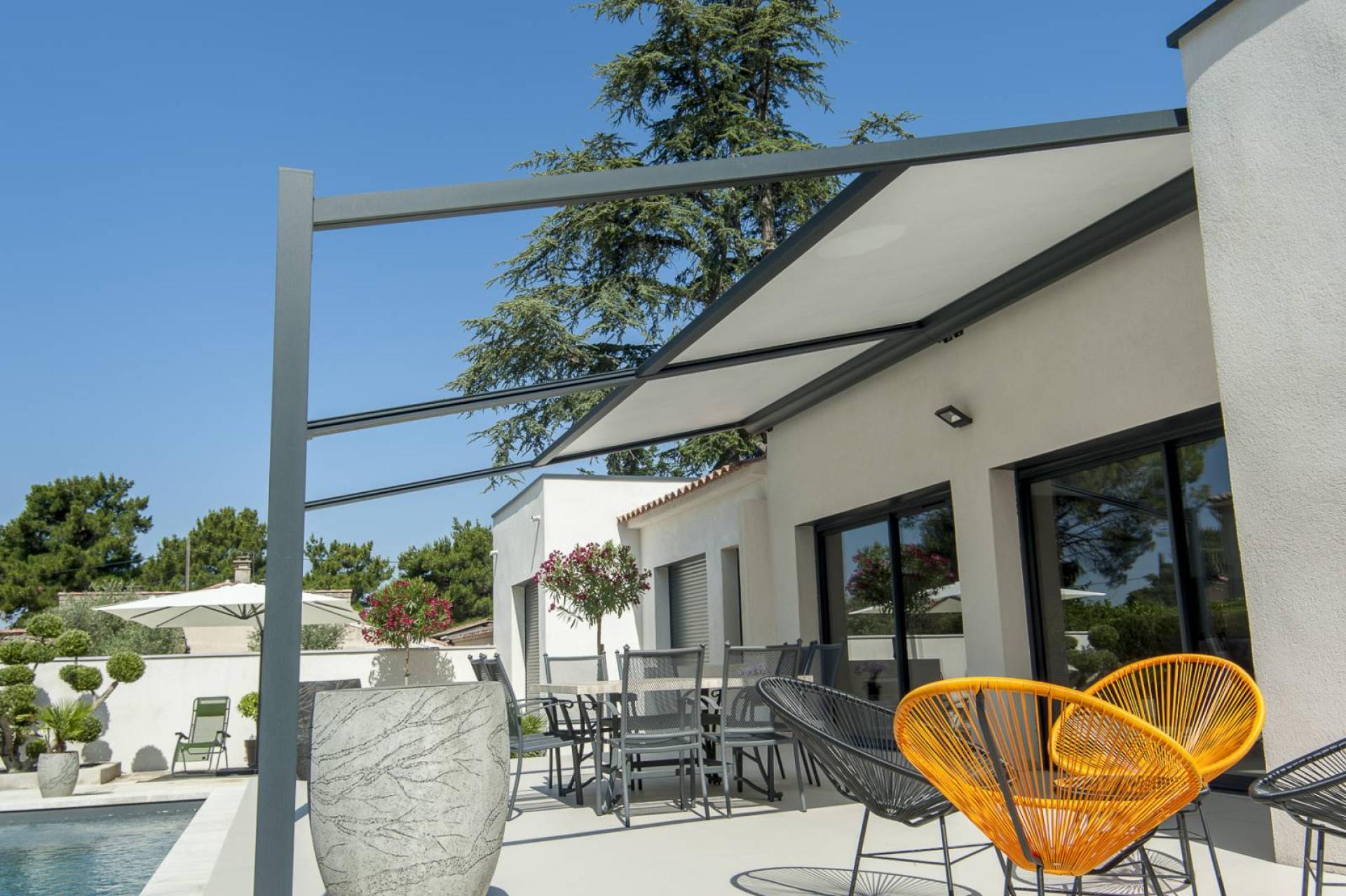 Ne vous fiez pas à ses lignes fines : la Lapure est une pergola robuste, entièrement conçue en aluminium thermolaqué, avec une toile tendue motorisée et résistante aux intempéries. Elle se décline en plusieurs versions :
