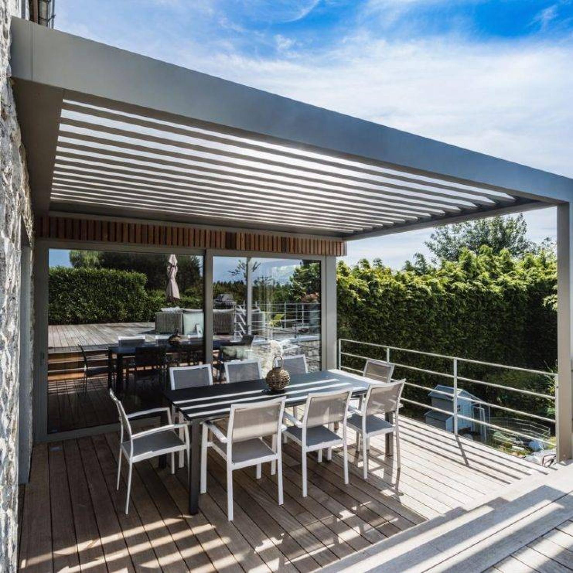 La pergola bioclimatique se distingue par sa conception et ses fonctionnalités axés sur le contrôle climatique et l'adaptation aux conditions météorologiques. Son but, vous protéger de la pluie et du vent et créer un véritable cocon au cœur de votre jardin ou terrasse afin d’augmenter l’espace de vie disponible pour votre extérieur.