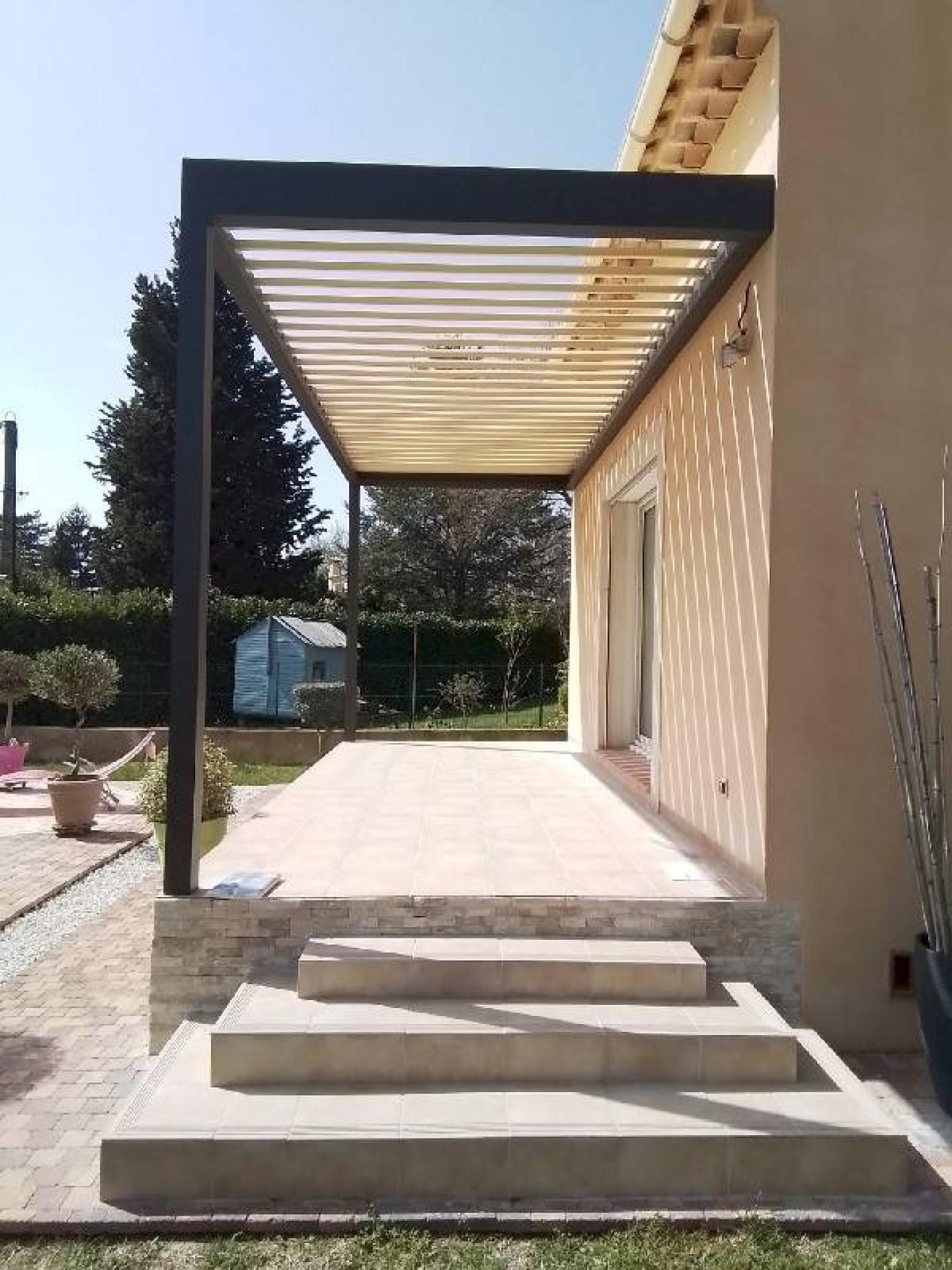 Notre entreprise de menuiserie à Salon de Provence, est intervenue pour installer une pergola bioclimatique à lames orientables sur la terrasse d’une maison contemporaine.