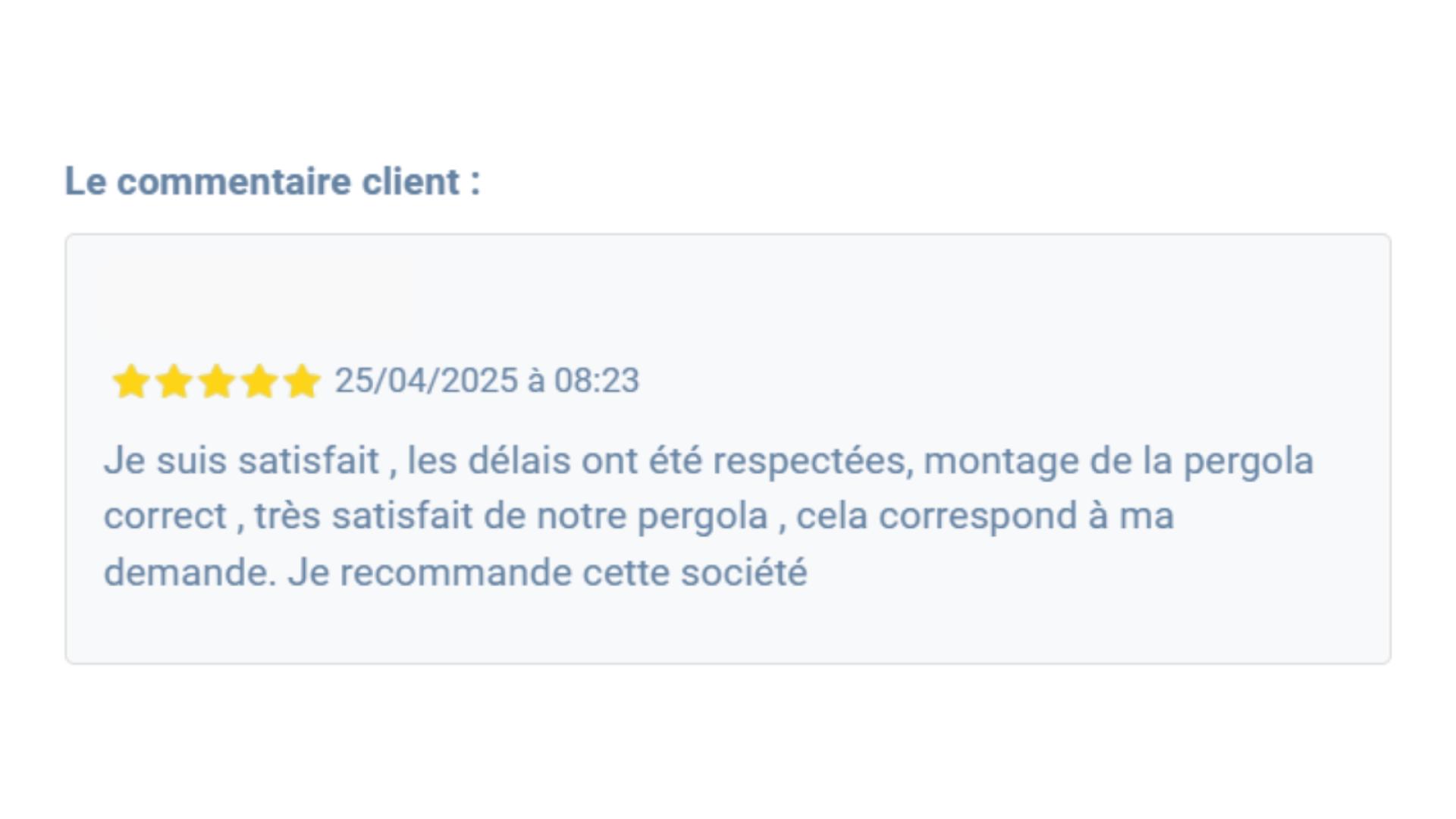 La pergola a été installée directement contre la façade de la maison, avec 2 colonnes seulement. Cela allège visuellement la structure tout en assurant stabilité et performance. Avec ses dimensions généreuses de 4000 mm de pivot par 3000 mm de projection, cette pergola permet de profiter pleinement de la terrasse, en toute saison.