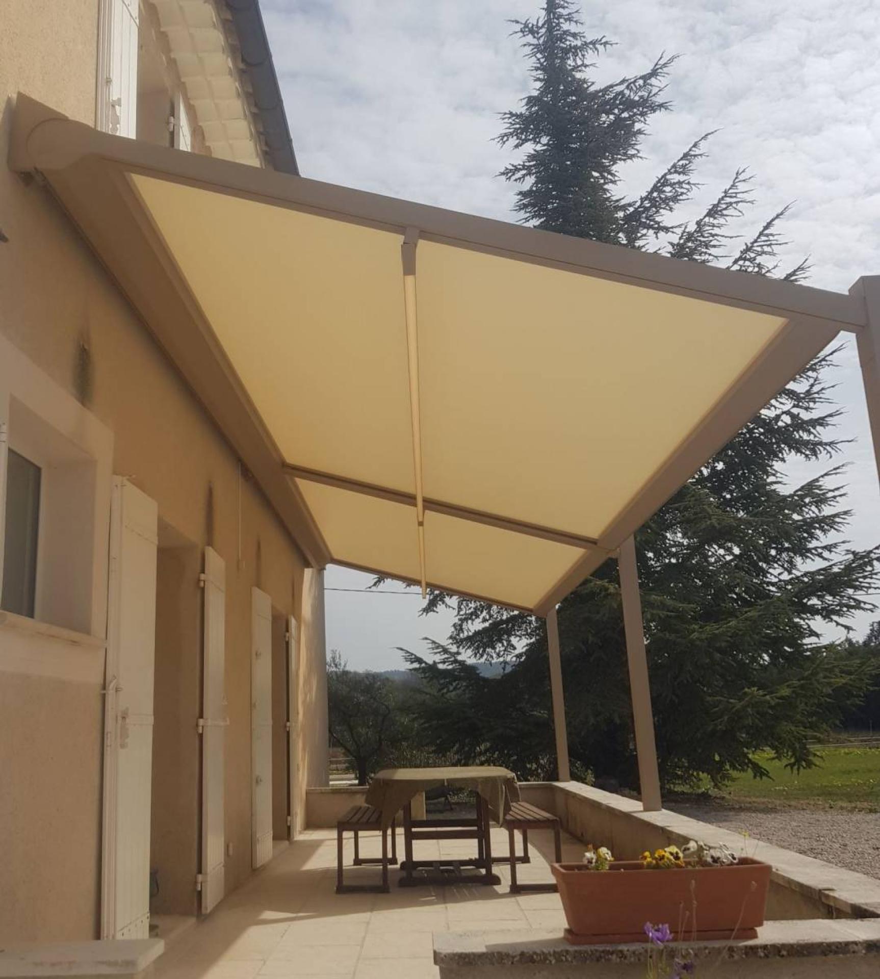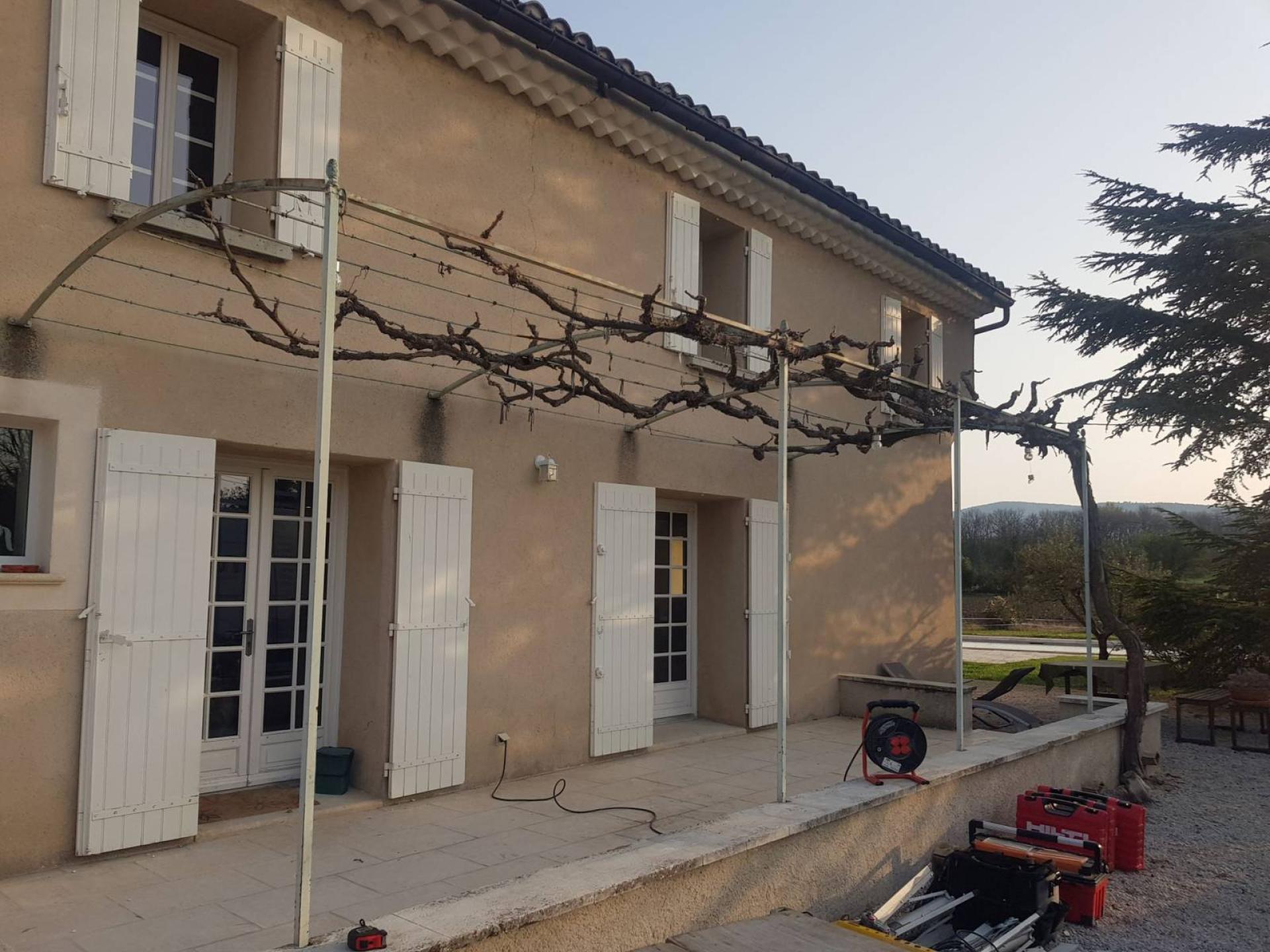 Pour cette réalisation, nous avons été contactés par les propriétaires d'une charmante demeure dans le Vaucluse à Lagnes, tout proche de l’Isle-sur-la-Sorgue, qui souhaitaient remplacer leur treille en fer pour protéger leur terrasse du soleil et profiter de leur extérieur au maximum.